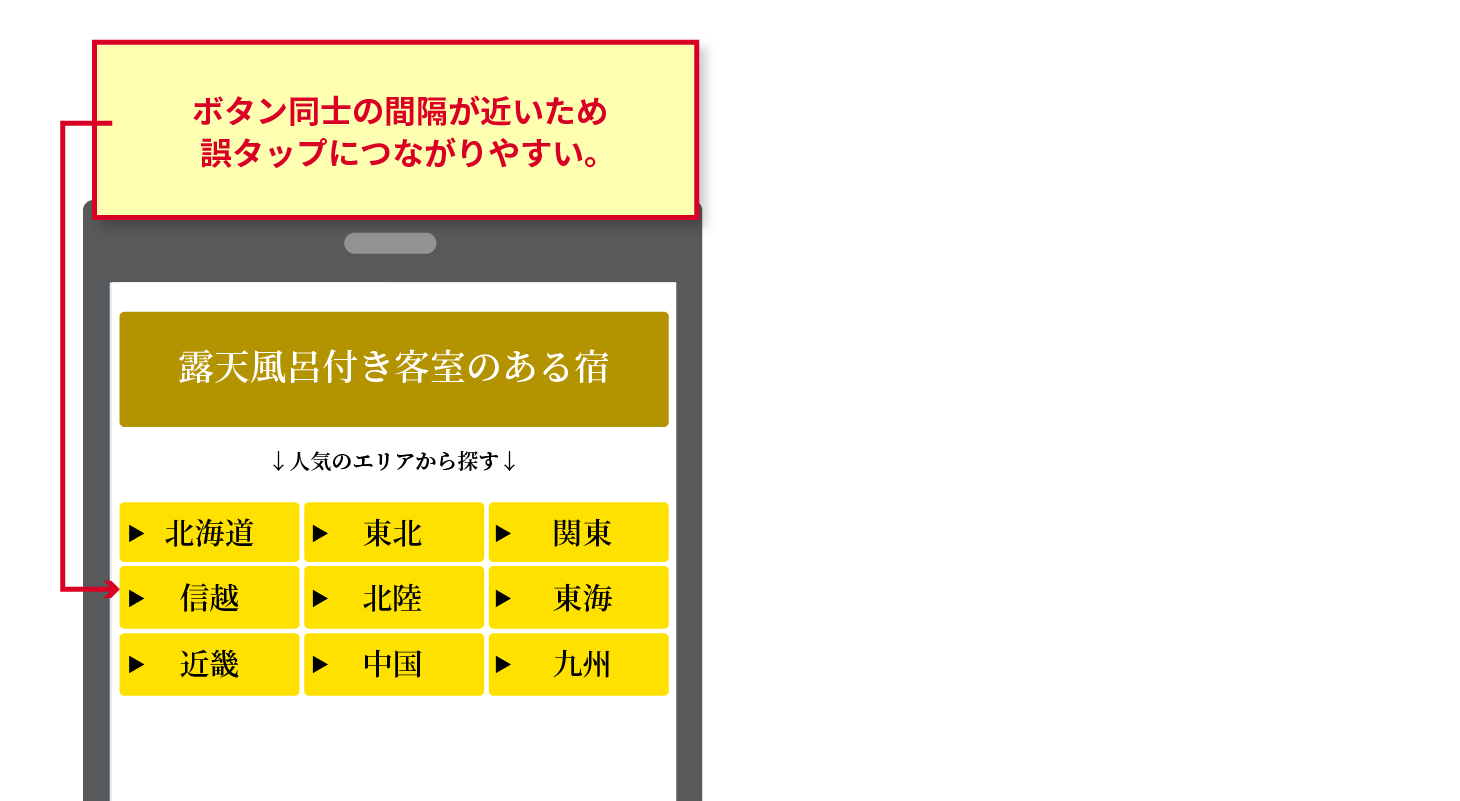リンクボタン同士が近くに配置されているため、誤った箇所をタップしてしまう可能性があります。