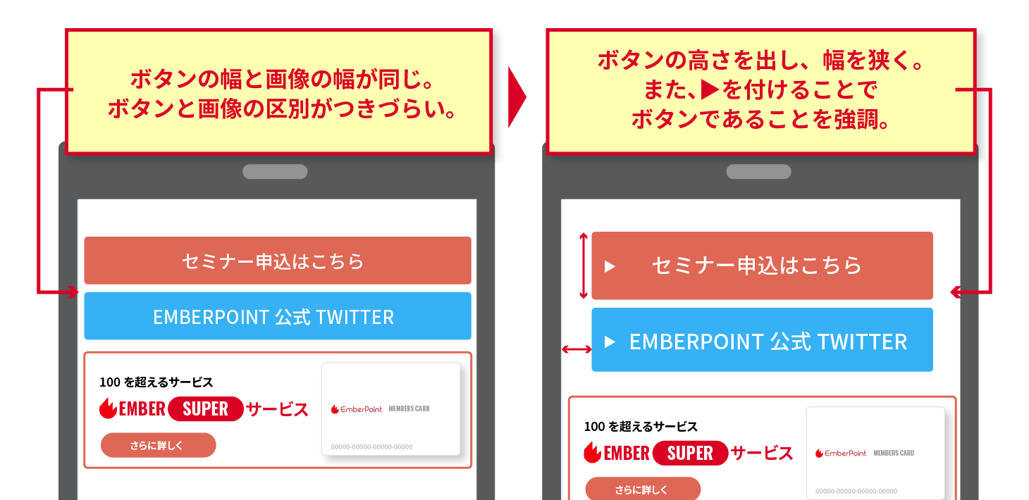 リンクボタンだと分かりやすくすることで、ボタンと画像の区別をつけ、ユーザーが認識しやすいようにします。
