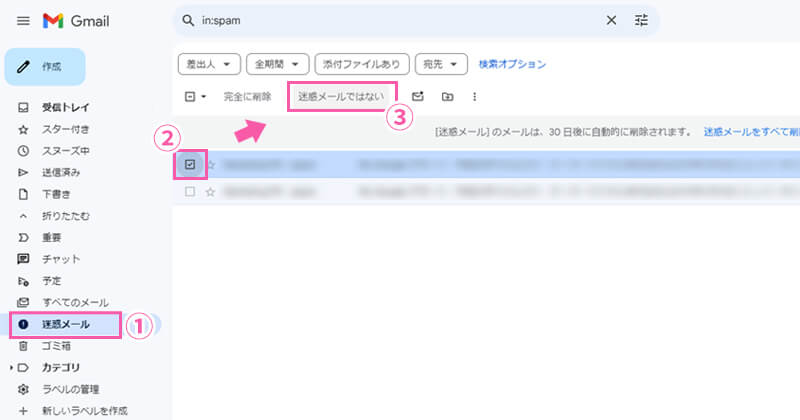 - PCブラウザ版Gmailでの迷惑メール解除の流れ