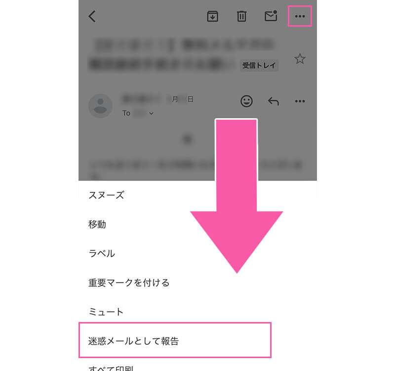 ②右上にある「・・・」を選択し「迷惑メールとして報告」を選択します。