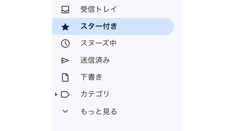 5. 「スター付き」をクリックすると、スター付きのメール一覧が表示される