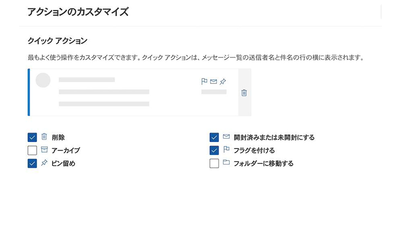 Outlookでは「クイックアクション」機能の設定によって操作の簡略化が可能です。クイックアクションの設定は以下の手順で行ないます。