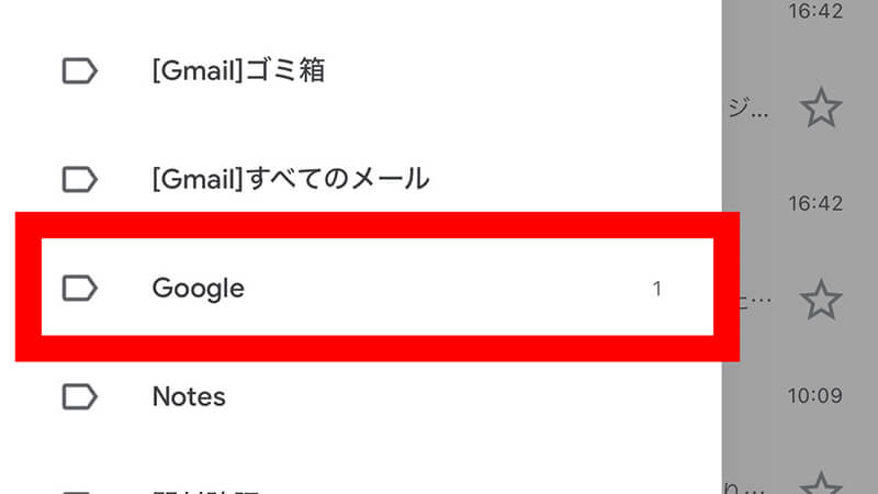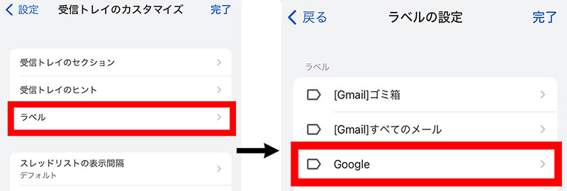 受信トレイのカスタマイズ画面が表示されたら、上部にある「ラベル」を選択し、先ほど作成した新規ラベルをタップします。