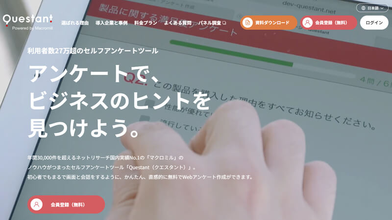 Questant(クエスタント)は、日本の企業が開発した国産のオンラインアンケートツールです。
