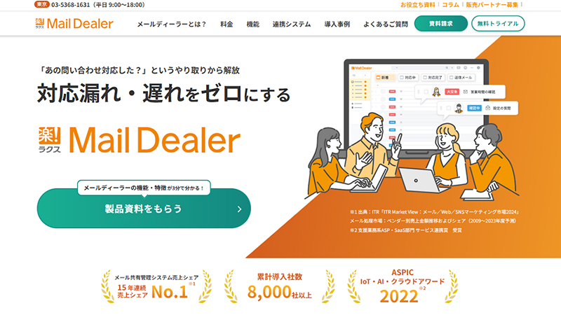 メールディーラーは、株式会社ラクスが提供する問い合わせ管理に最適なクラウドメールサービスです。
