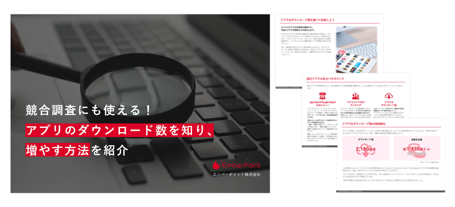 近年、モバイルアプリのダウンロード数は増加傾向にあり、アプリを利用するユーザーが増えています。市場拡大に伴い、アプリ導入を検討する企業も多いのではないでしょうか。 しかし新しいアプリをただリリースするだけではダウンロード数は伸びません。事前に競合アプリを把握したり、市場分析したりなど需要の見込みを立てる必要があります。 そこで本記事では、モバイルアプリの競合調査で見るべきポイントやダウンロード数を知る方法、増やす方法などについて紹介します。