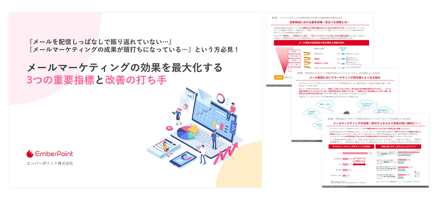 本レポートでは、有用な手段であるメールマーケティングの効果を最大化するために重要な3つ指標と、改善の打ち手について紹介いたします。