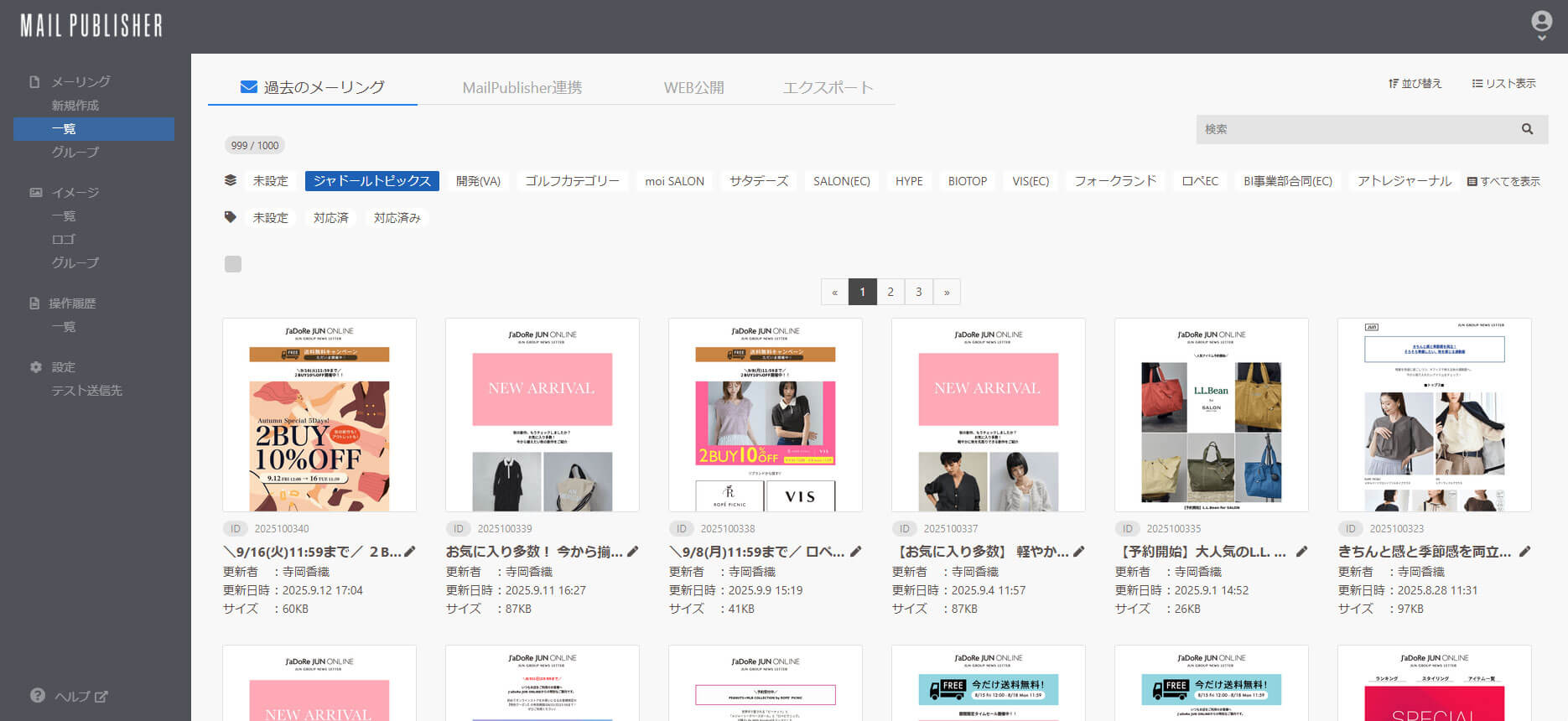 寺岡氏:メールを作るのと同じ感じで作れるのがすごく便利だなと思って使わせていただいています。あと、細かな機能ですけど「タブ分け※後段にイメージあり」ができるのが、私たちみたいに多くのブランドを展開している会社にとってはすごく便利です。