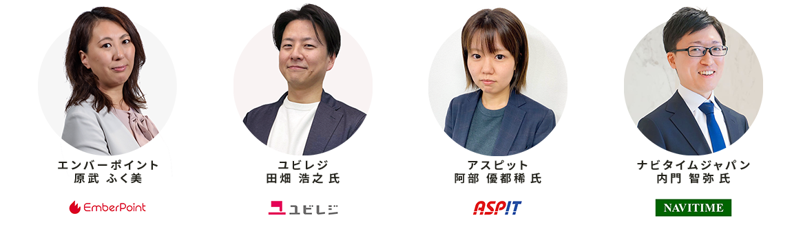 | スピーカー | エンバーポイント株式会社 株式会社ユビレジ 株式会社アスピット 株式会社ナビタイムジャパン |