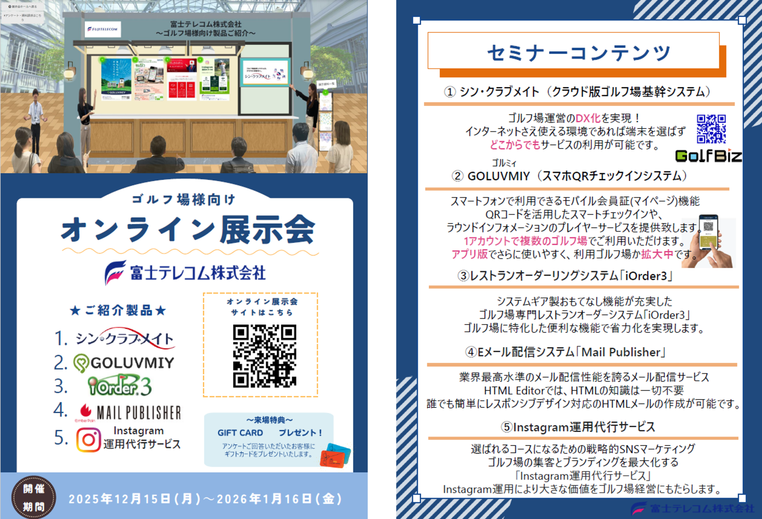 エンバーポイント株式会社(以下「エンバーポイント」)が富士テレコム株式会社主催のゴルフ場様向けオンライン展示会に出展いたしますことをお知らせいたします。