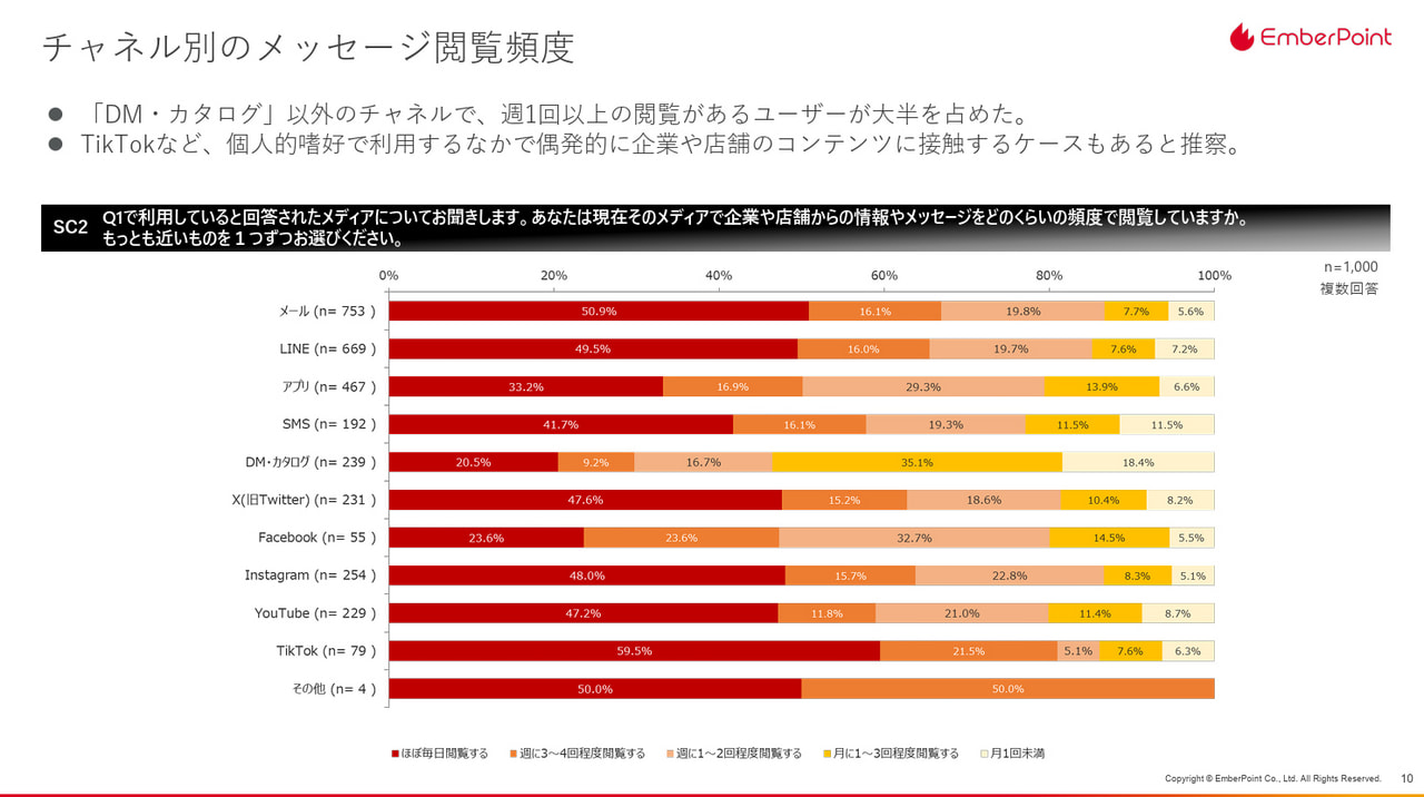 ●メッセージの閲覧頻度はチャネル別に異なる
