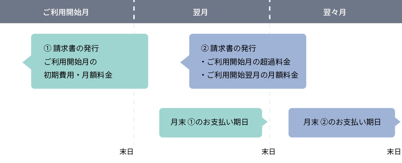 - サービス利用開始月の月額料金の請求と併せてご請求いたします。